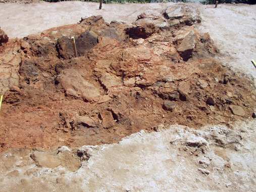 The wall was 5-6 times plastered with clay, the upper being stronger